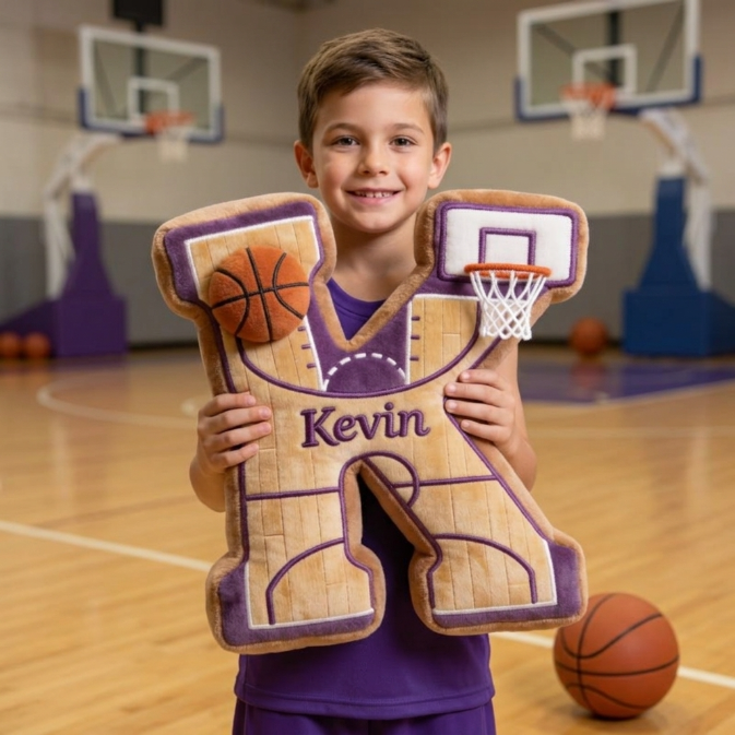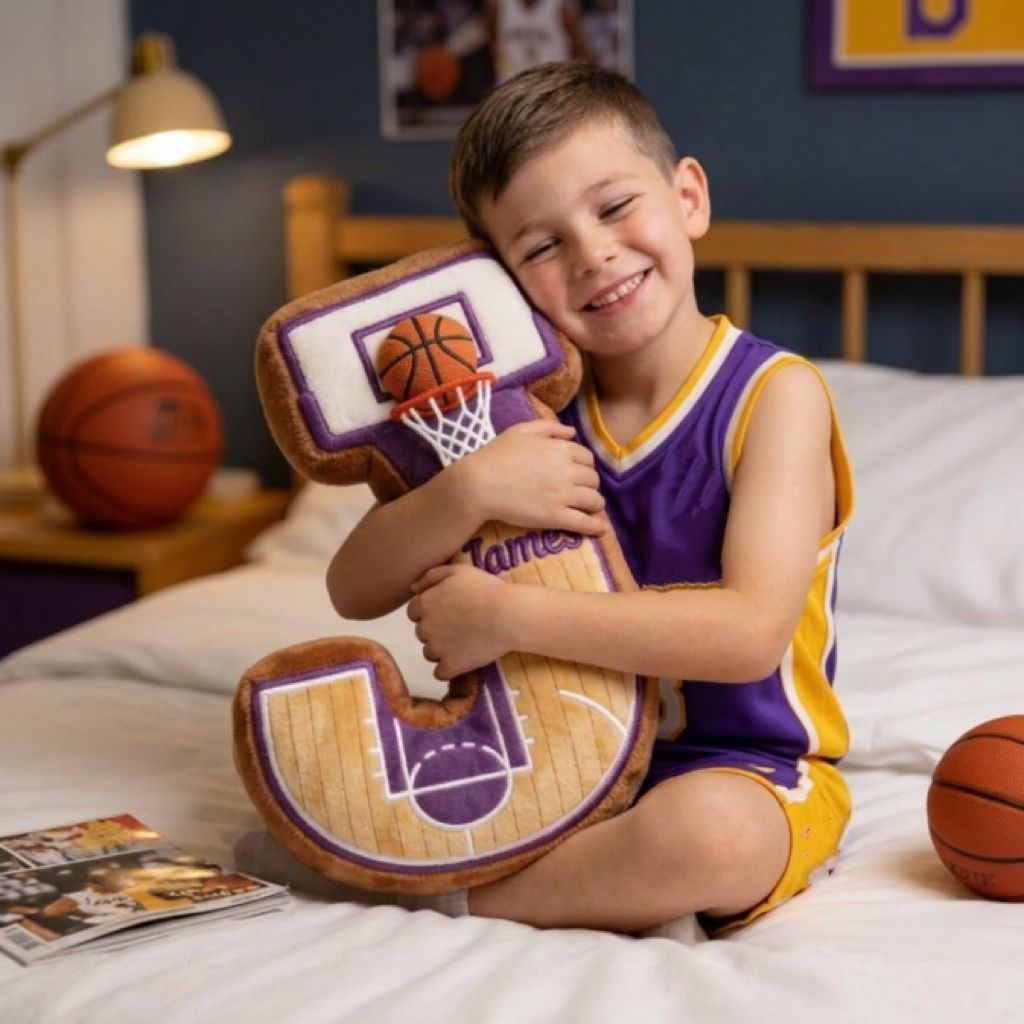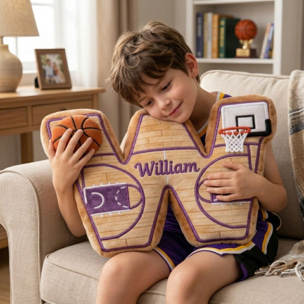 Personalisiertes Basketball-Initialkissen – Individuelles Namen-Kuschelbuchstabenkissen für Jungen
