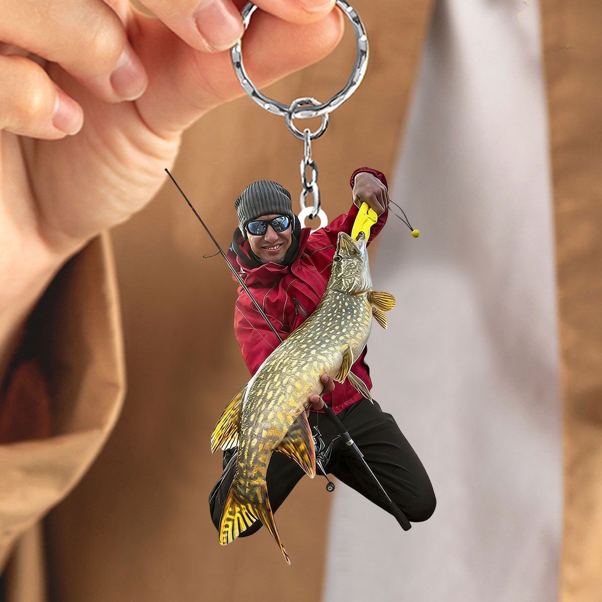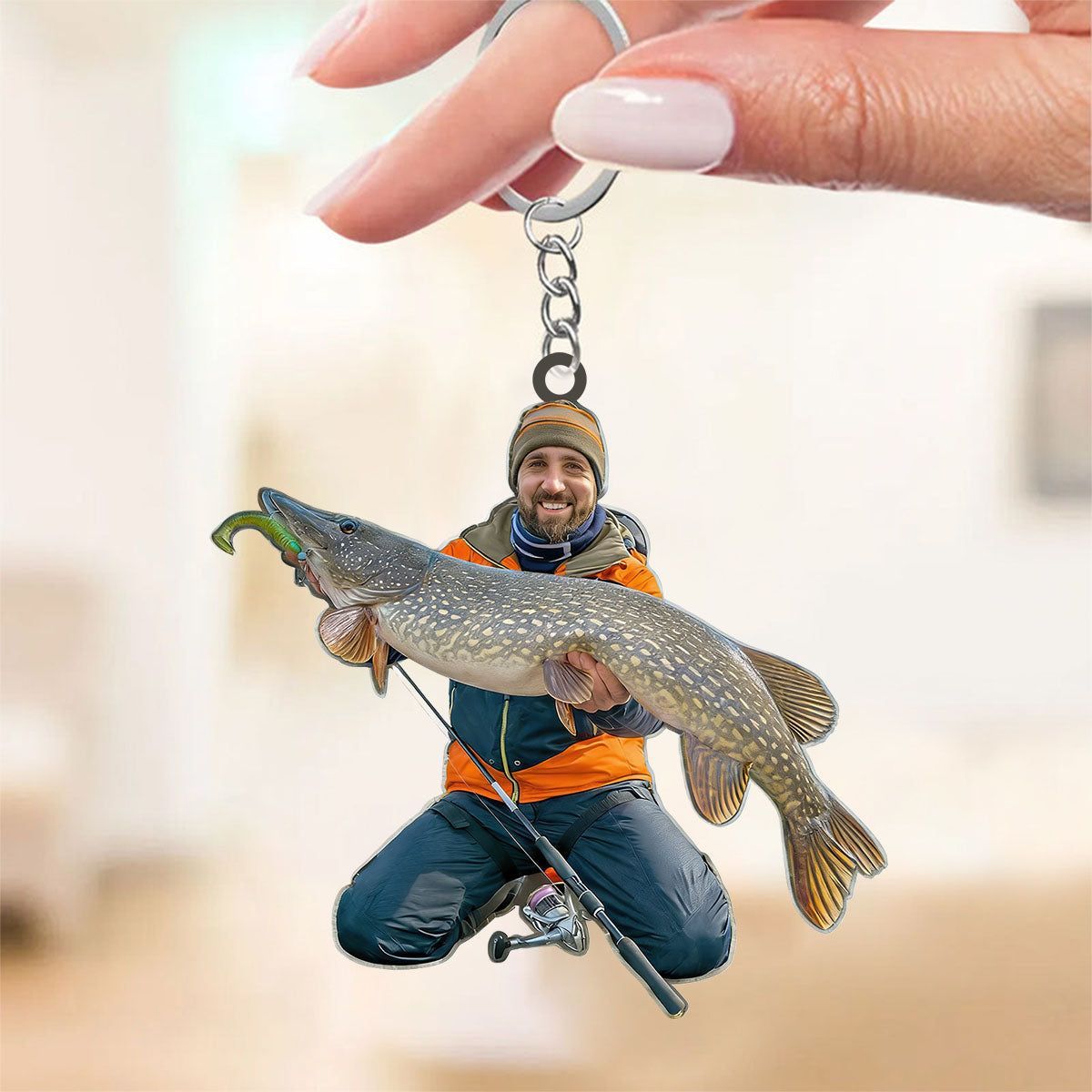 Angeln große Fische Custom Foto Personal isierte Acryl Schlüssel bund Geschenk für Fischer, Angler