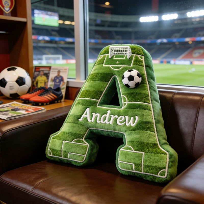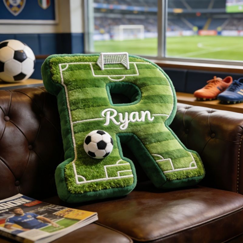 Individuelles Fußball-Namen-Kissen – Verwandeln Sie jeden Buchstaben in ein Fußballfeld-Design