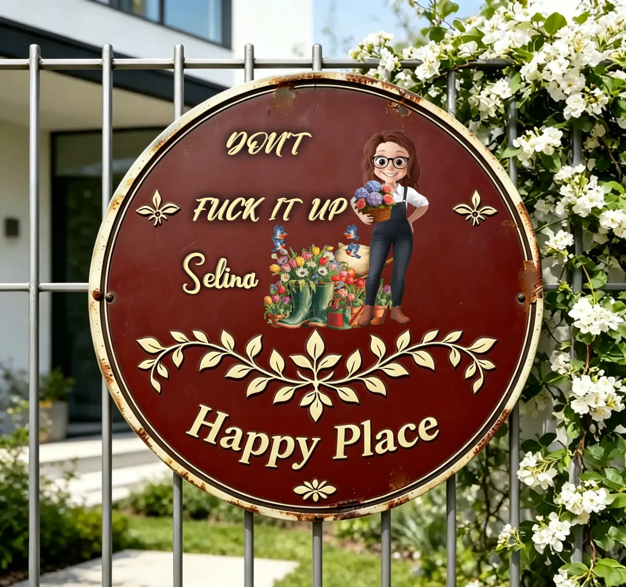 Welcome to My Happy Place – Metallschild — Individuelles Design, rustikale Wohnkultur, originelle Wohnakzente, Hof- & Gartendeko Ein Geschenk für Mama