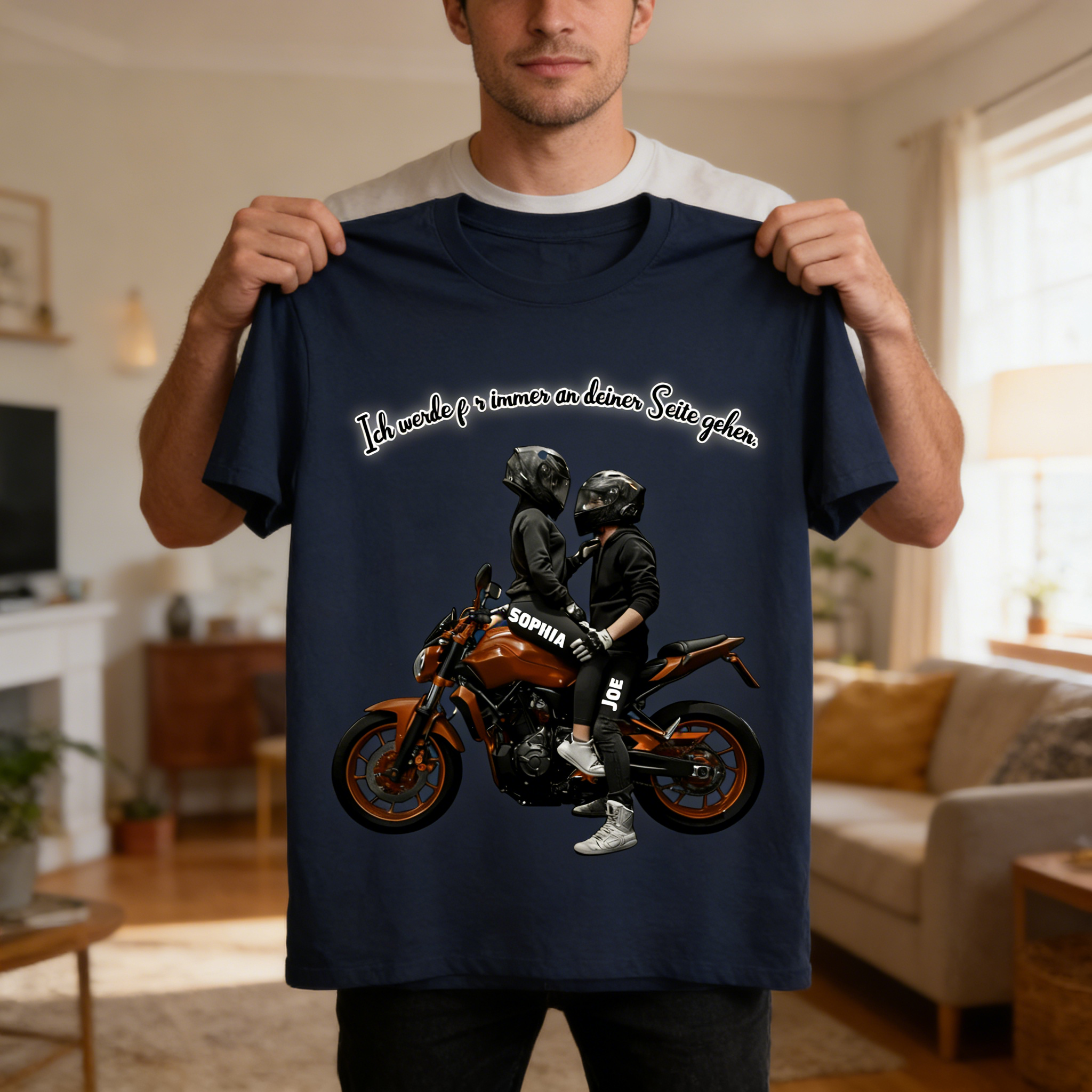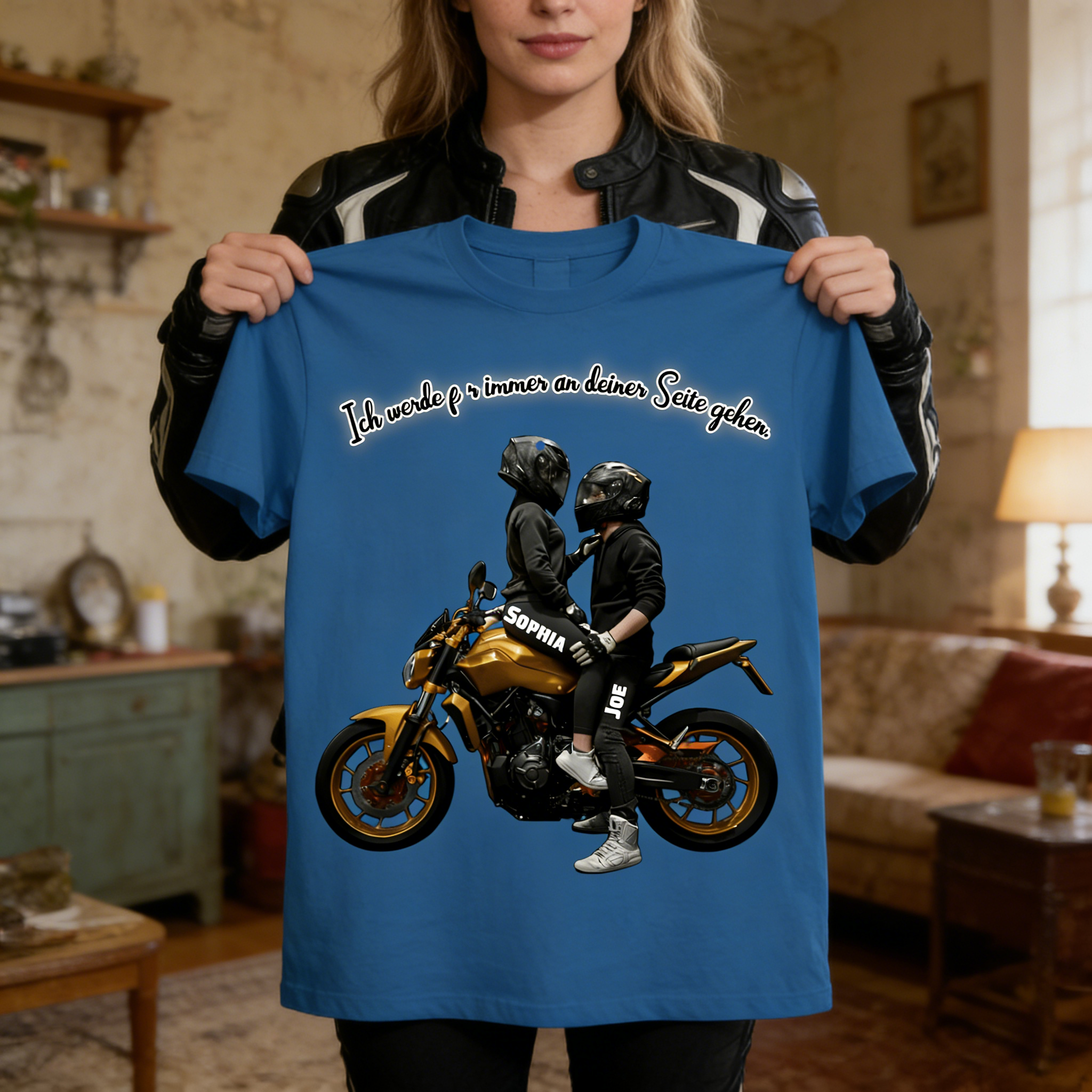🏍️ Motorrad Paar T-Shirt – Personalisiertes Partnerlook Shirt für Biker Paare | Individuelles Geschenk für Freund & Freundin