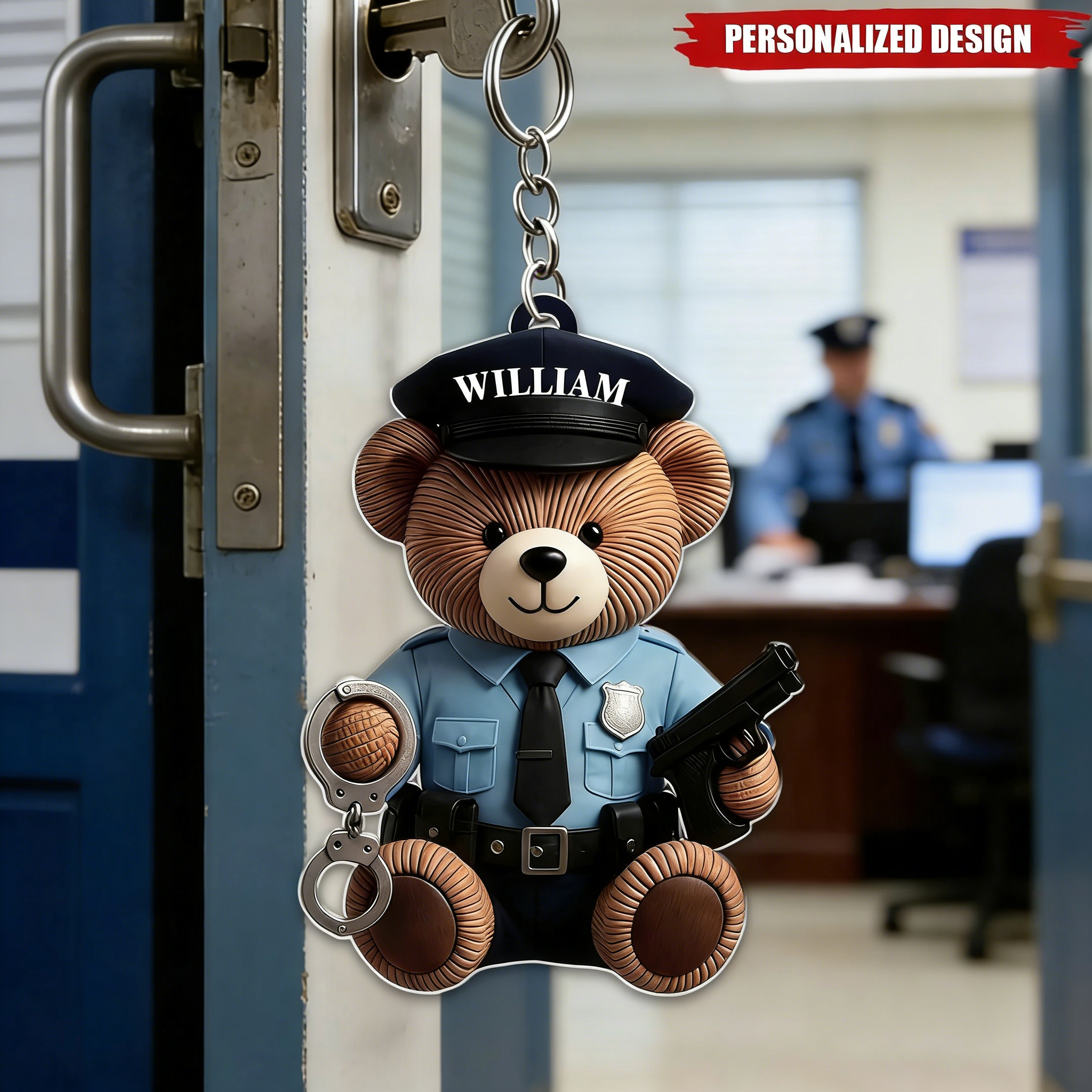 Para los corazones valientes que llevan la insignia y el oso que está a su lado. Detrás de cada oficial hay un corazón que sirve, manos que protegen y un espíritu que nunca retro cede. Esto no es solo un llavero, es unSuave tributo al trabajo duroDe la aplica ción de la ley. Un tierno oso policía, vestido de uniforme y listo para el servicio, recuerda a cada oficial que se ve su coraje, se valora su opericio y su servicio es import ante todos los días.