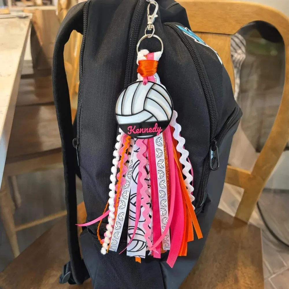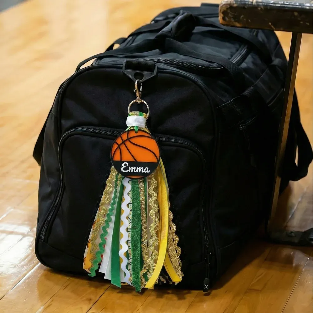 Crafted from 1/8-inch laser-cut acrylic in a multi-layer design, each tag can be customized with your name, number, or team motto. The attached tassel is handmade from a mix of 12 carefully selected ribbons, yarn, and cord for a full, lively swing. Measuring about 10 x 3 inches, it’s both eye-catching and durable—built to withstand the hustle of practice, travel, and game day.