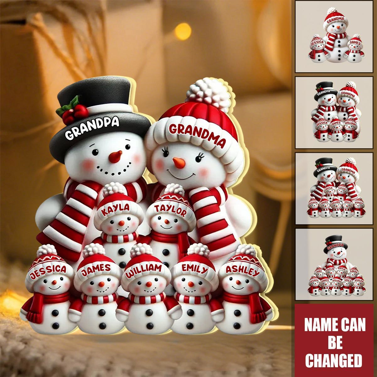 1 x süßer Schneemann mit 3D-Effekt – personalisierte Leuchtbox, Geschenk für Familie, Oma, Opa