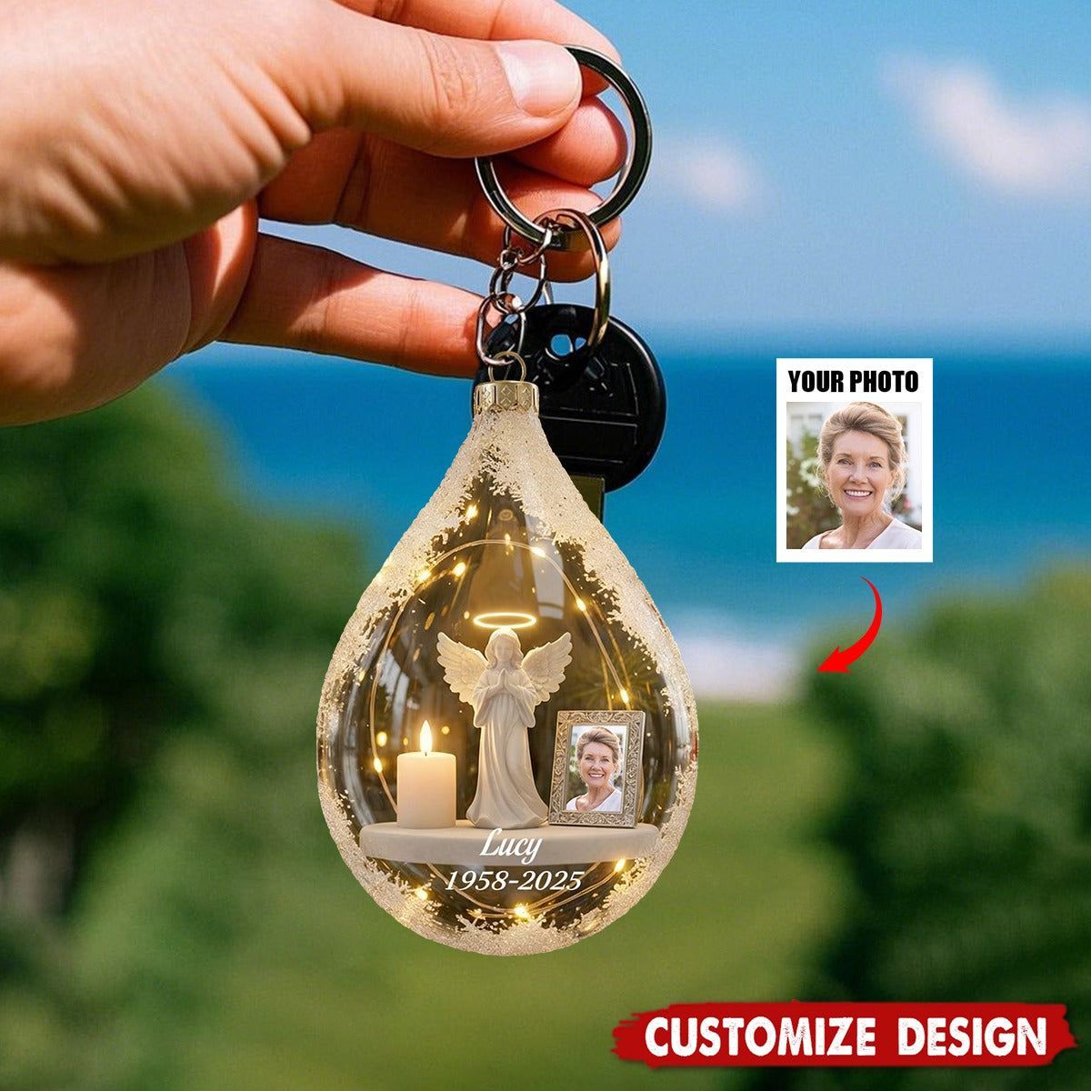 Personalisierter Gedenk-Schlüsselanhänger mit Engel und Kerze – Erinnerungsgeschenk