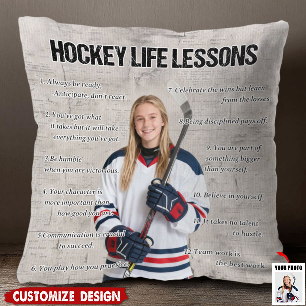 Personalisierte Hockey Life Lessons Upload Foto Kissen-Geschenk für Hockey-Liebhaber