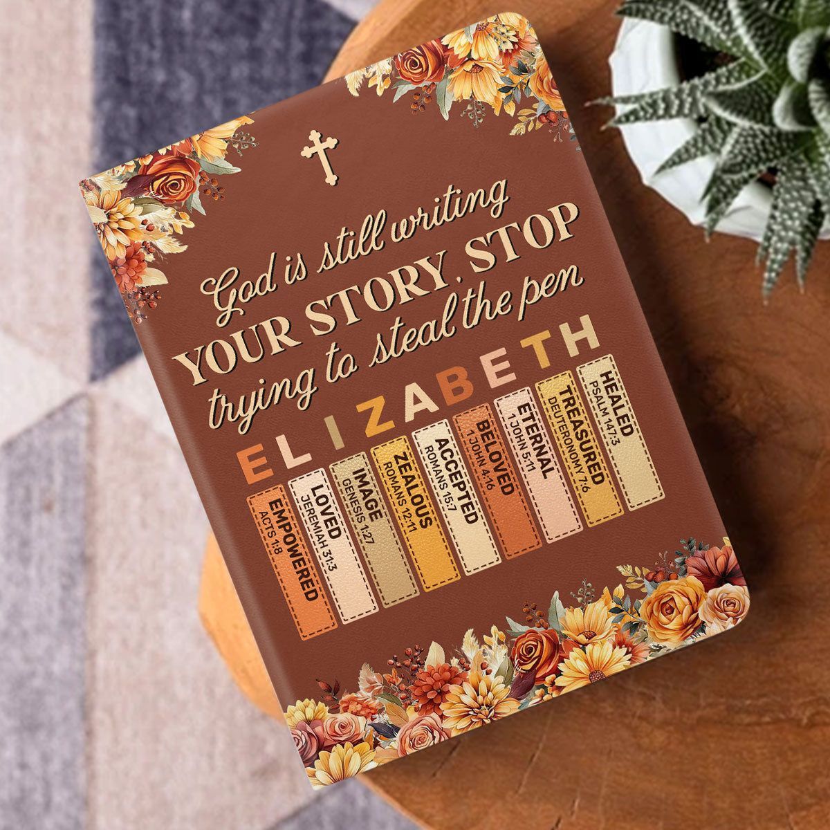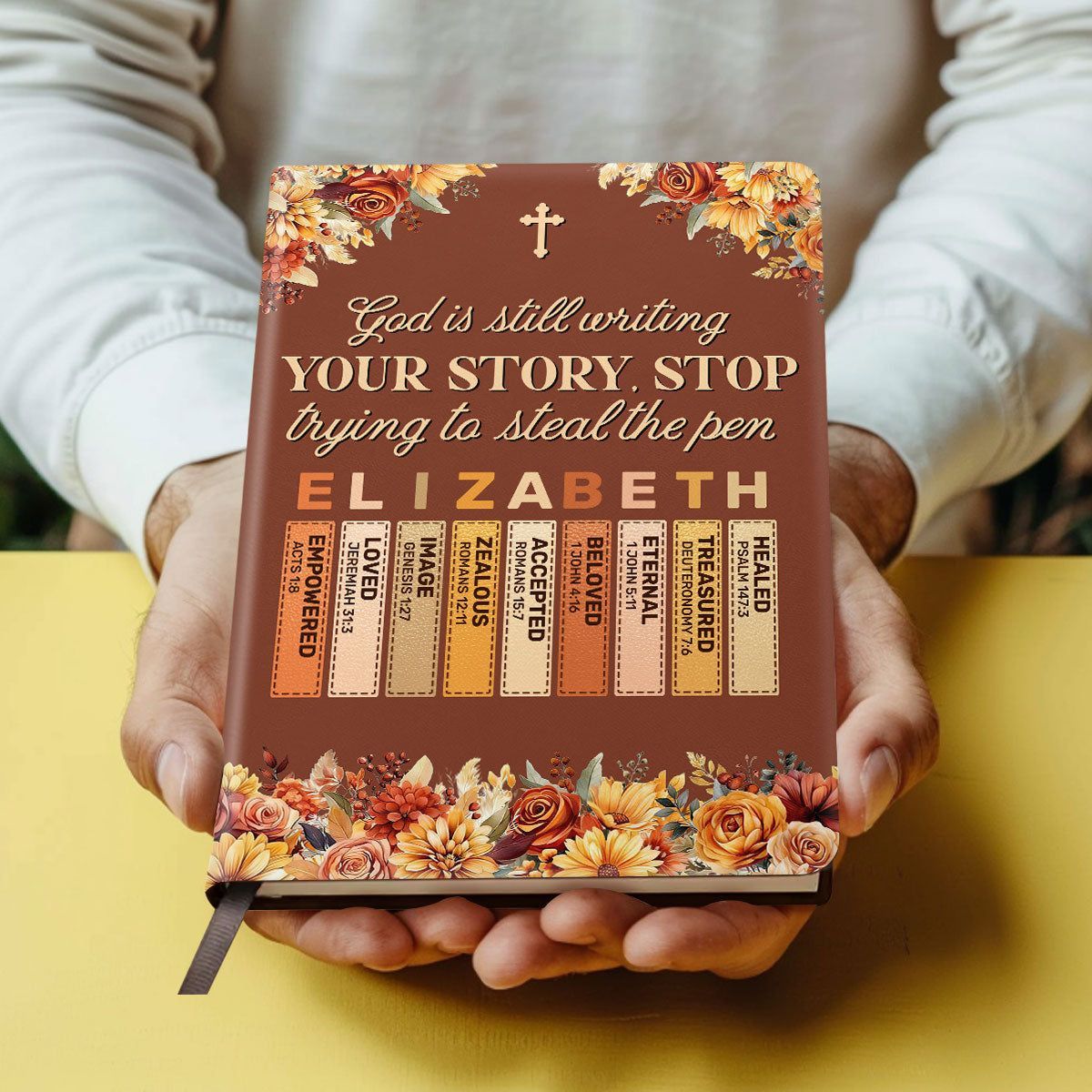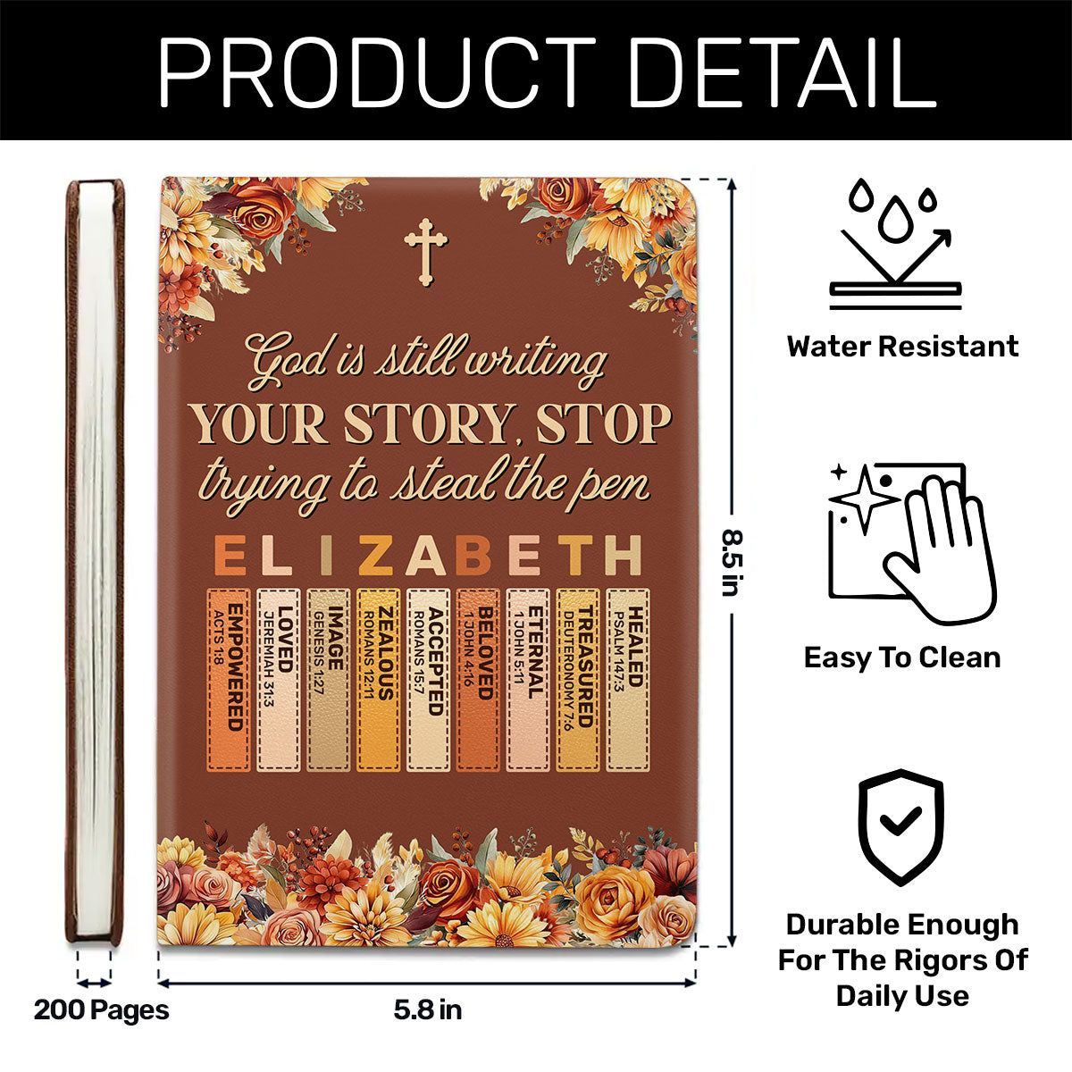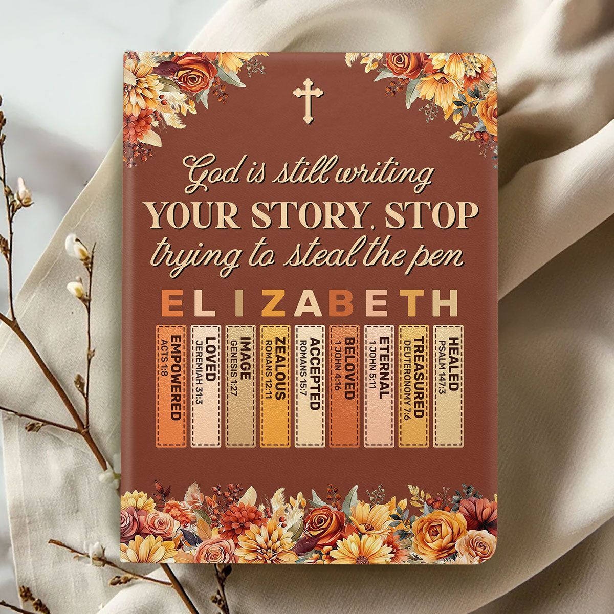 1 x „Gott schreibt immer noch Ihre Geschichte“ | Personalisiertes Notizbuch mit Ledereinband
