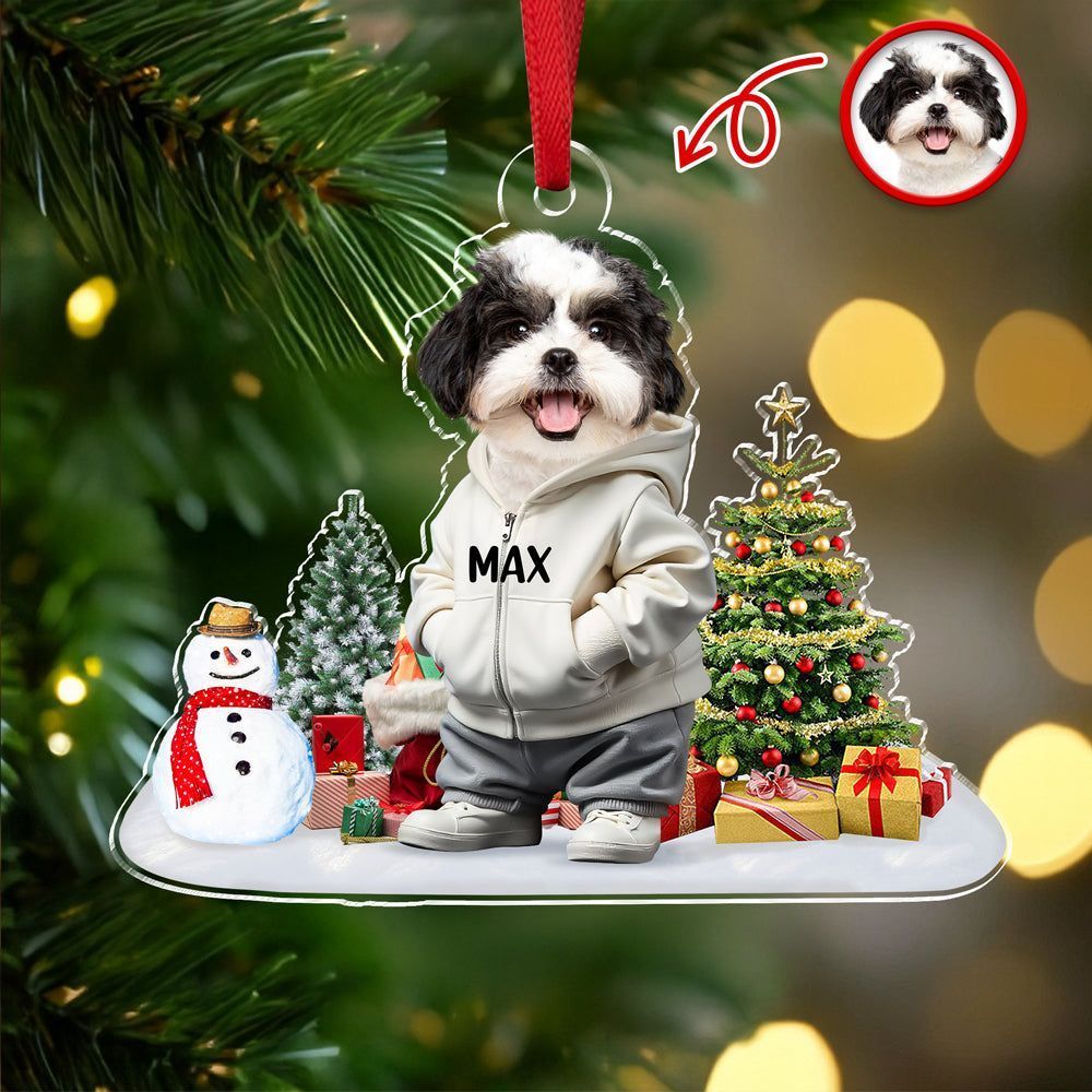Feiern Sie die Weihnachtszeit mit einer persönlichen Note mit diesem personalisierten Acryl-Weihnachtsornament mit Hund und Katze. Das Foto Ihres geliebten Haustiers wird wunderschön in Szene gesetzt und verleiht Ihrer Weihnachtsdekoration einen warmen, herzlichen Charme. Dieses Ornament aus robustem Acryl bewahrt wertvolle Erinnerungen Jahr für Jahr und schmückt Ihren Weihnachtsbaum mit einem einzigartigen, bedeutungsvollen Akzent. Ideal für Tierliebhaber, die ihre Feste zu etwas ganz Besonderem machen möchten.