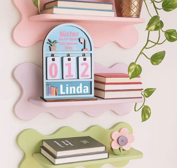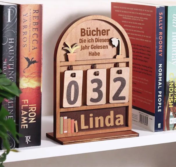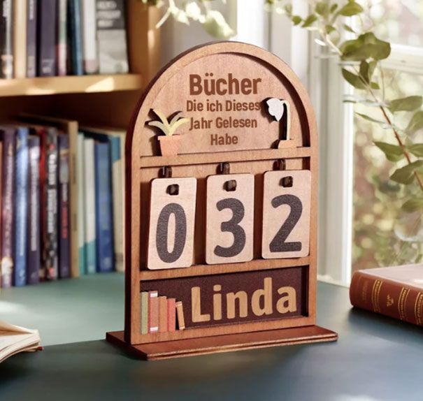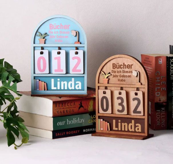 Personalisierter Mini-Büchertresen mit Büchern, die in diesem Jahr gelesen wurden, mit flacher Unterseite – ein perfektes Geschenk für Bücherwürmer und Bibliophile und eine schöne Dekoration fürs Bücherregal.