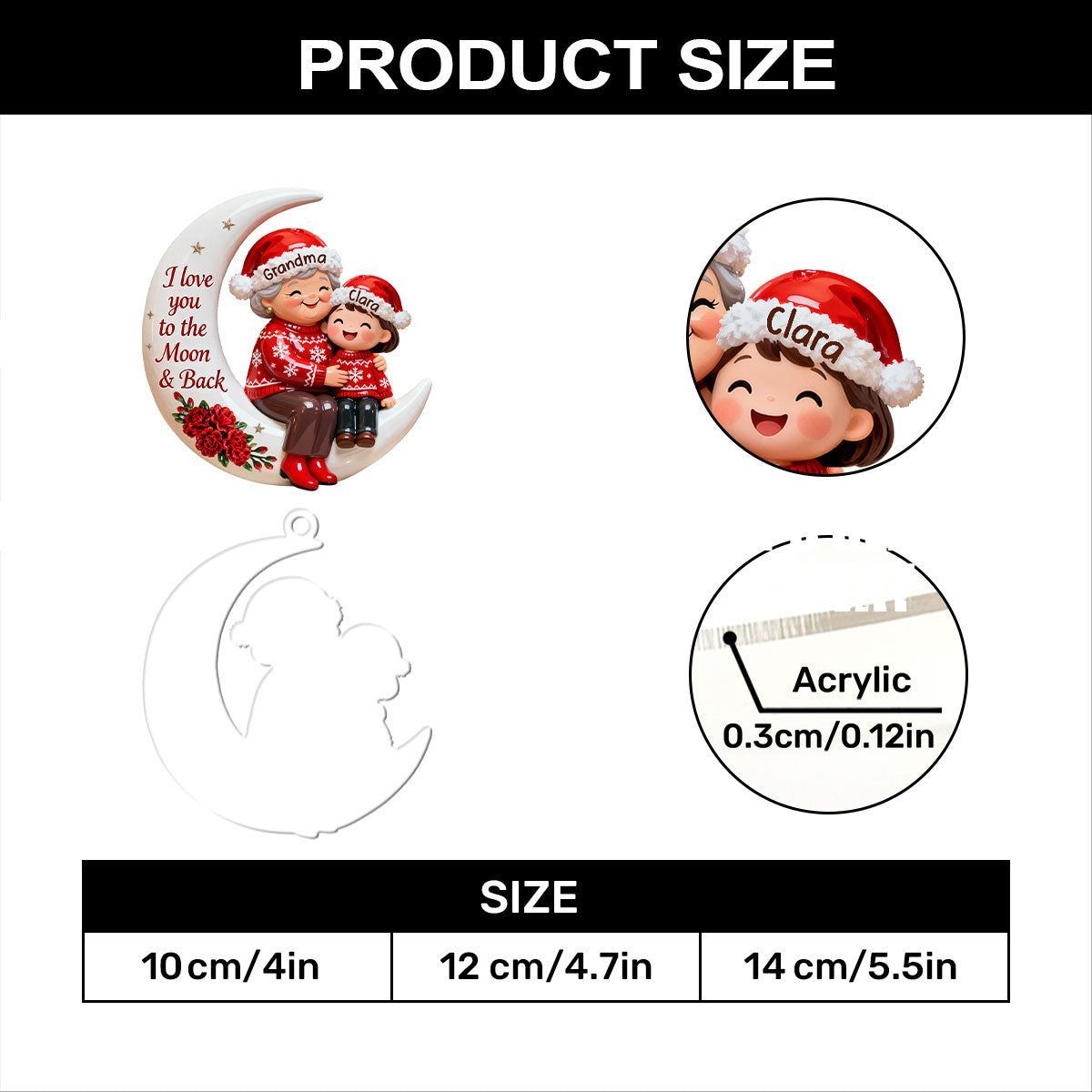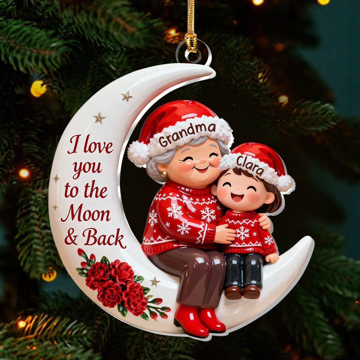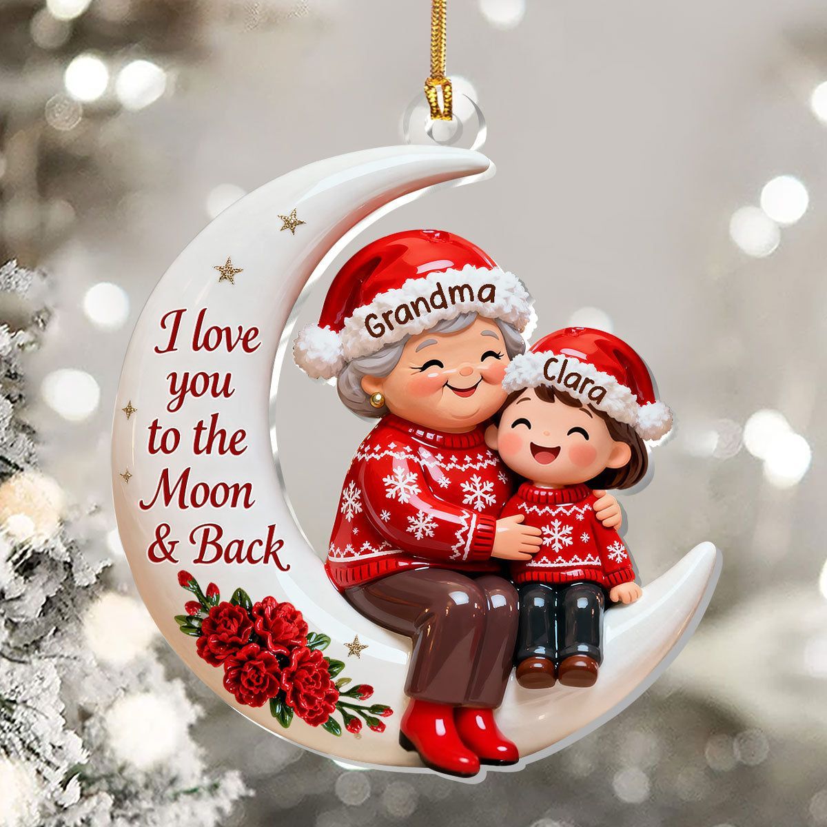 Voller Liebe, auf dem Weg zum Mond – personalisierte, einlagige Acryl-Flachornamente