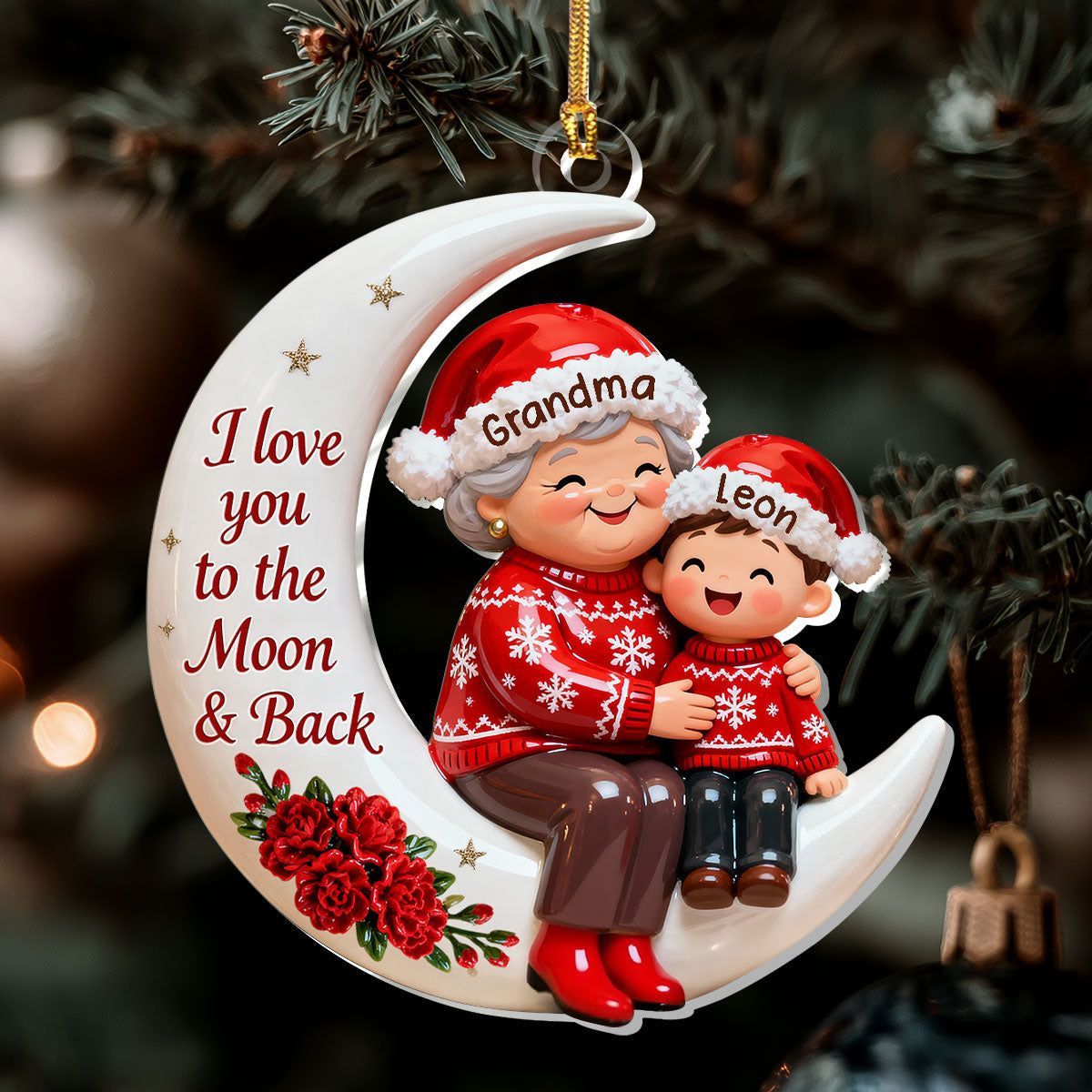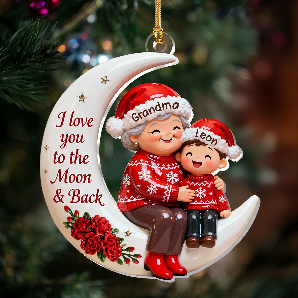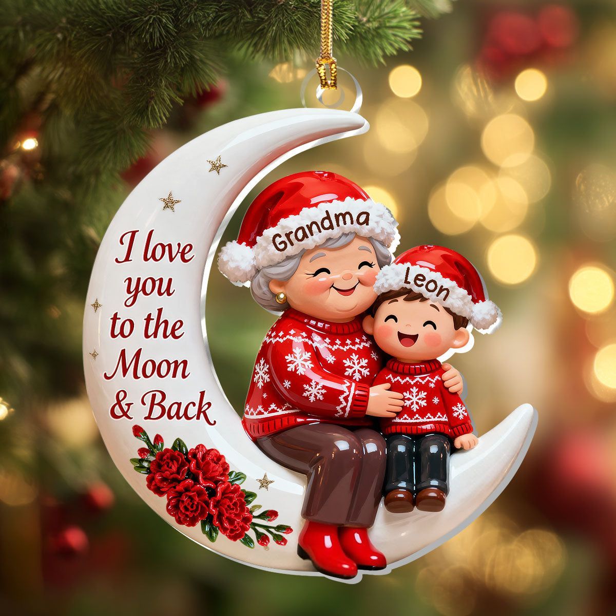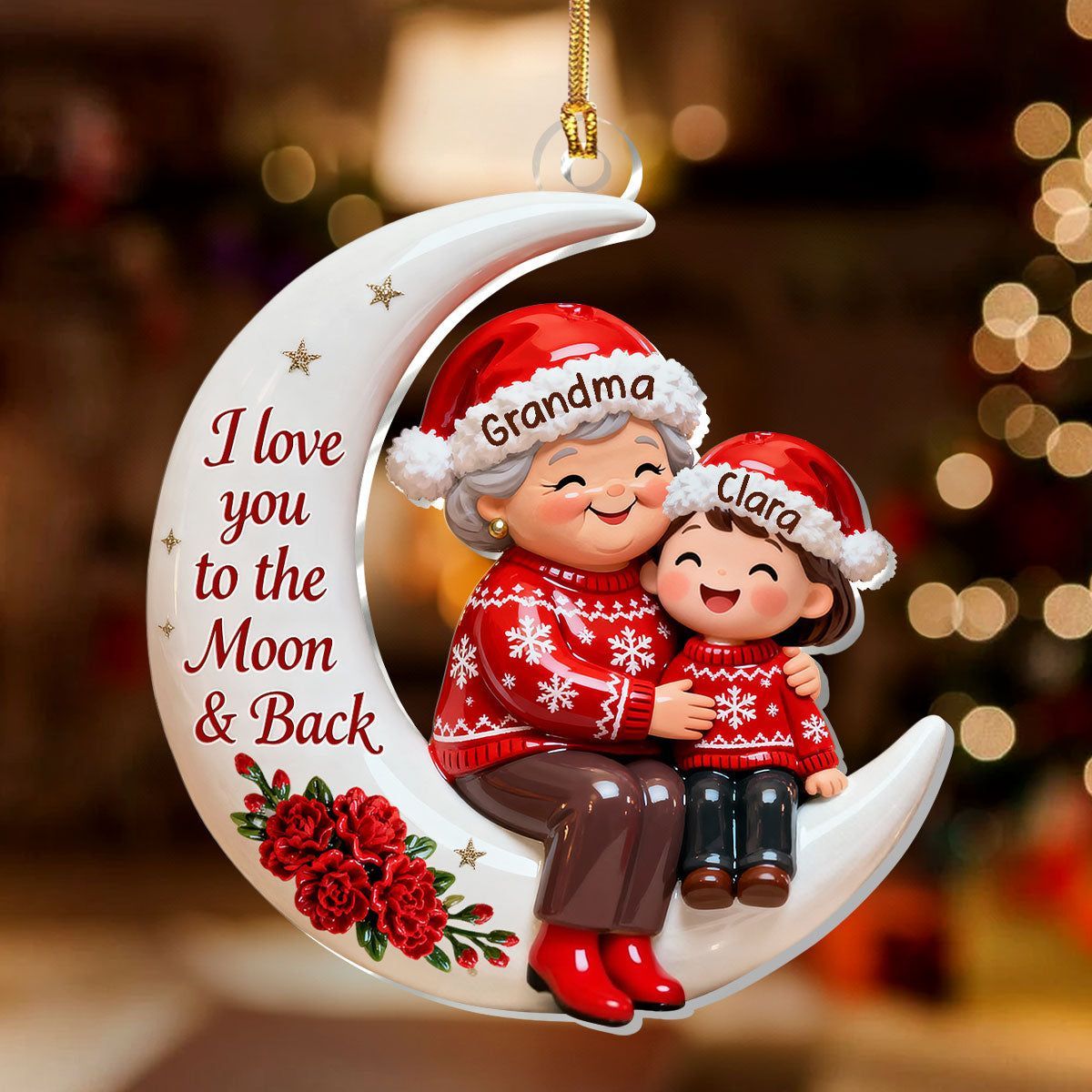 Voller Liebe, auf dem Weg zum Mond – personalisierte, einlagige Acryl-Flachornamente
