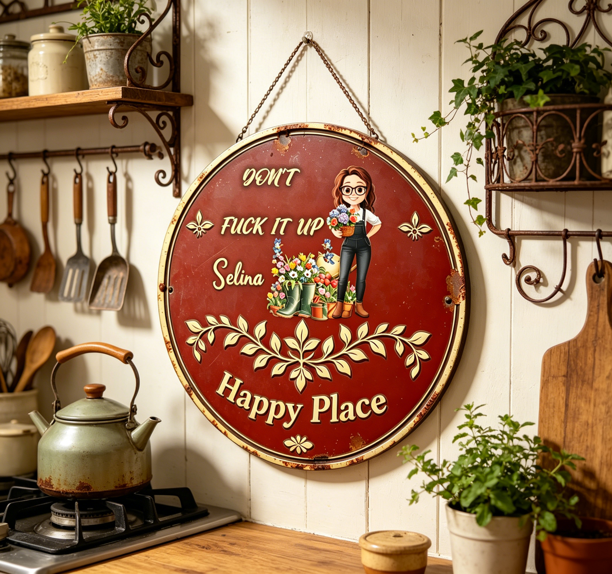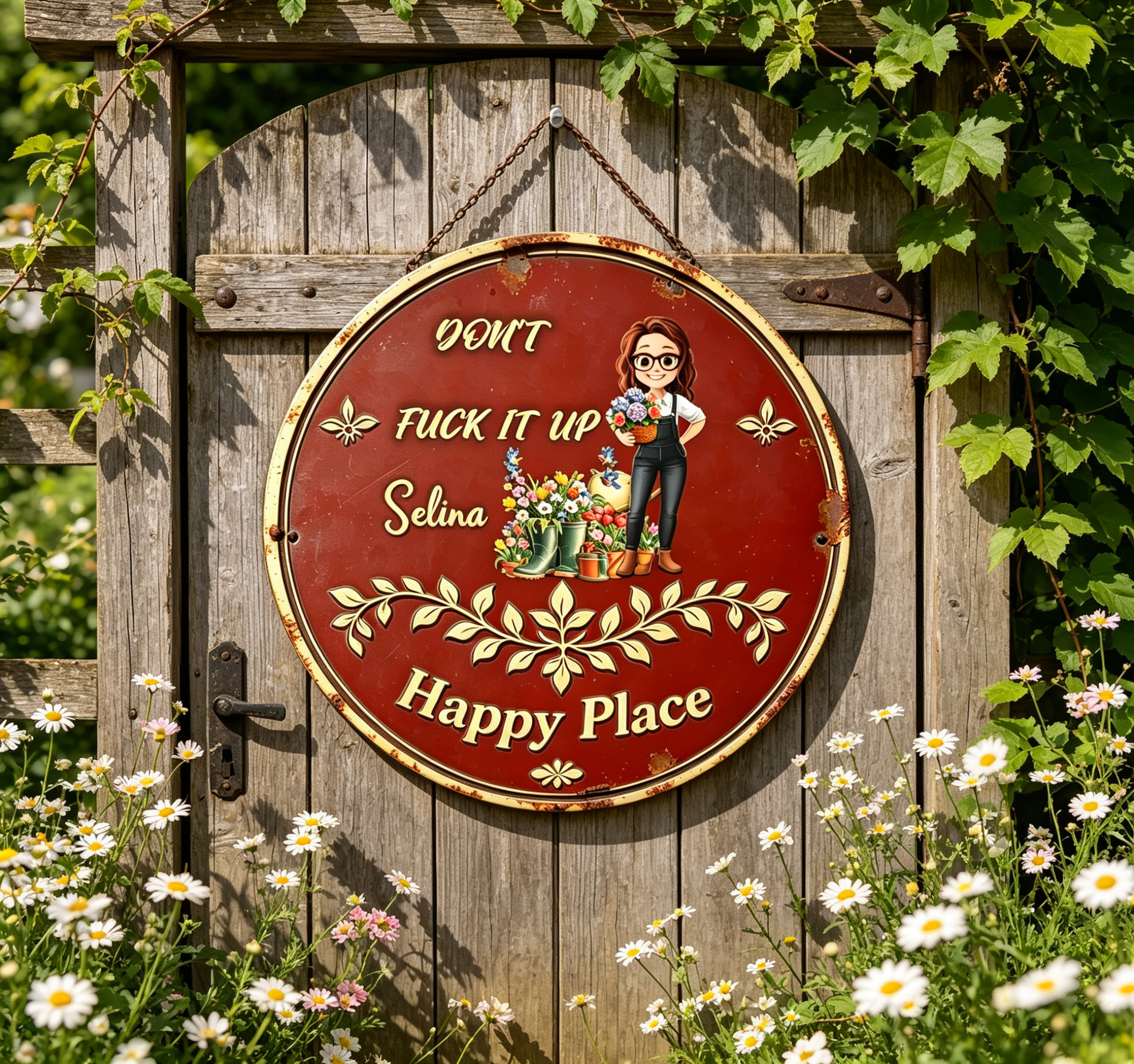 Welcome to My Happy Place – Metallschild — Individuelles Design, rustikale Wohnkultur, originelle Wohnakzente, Hof- & Gartendeko Ein Geschenk für Mama