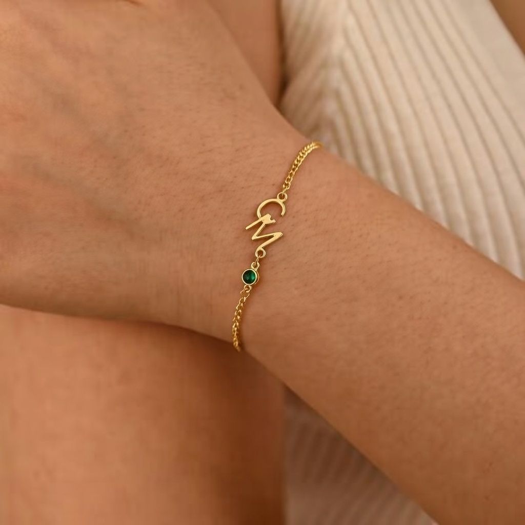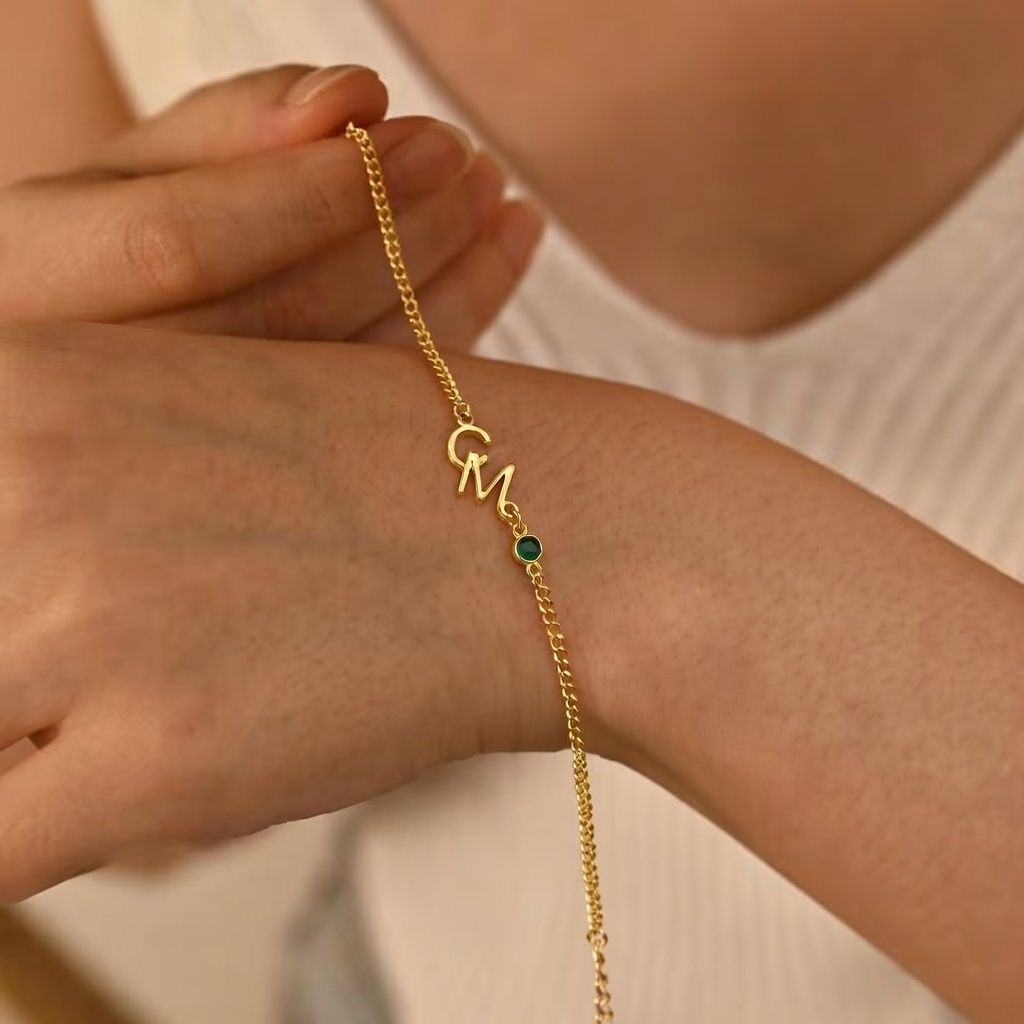 ✨Exquisites Anfangs armband mit Geburts stein | Personal isiertes doppeltes Anfangs armband