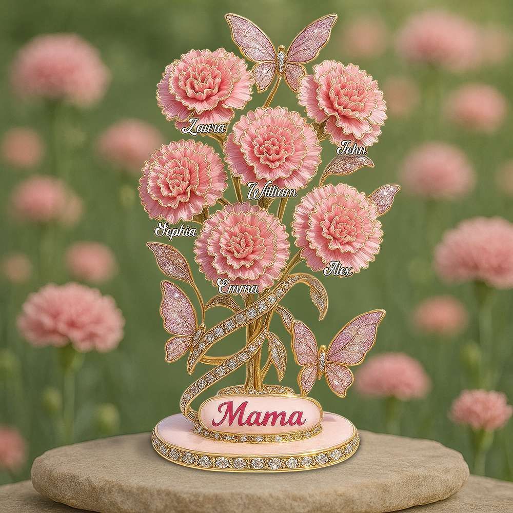 Personalisierte Geschenke für Mama: Plaketten, Nelken, frische Blumen