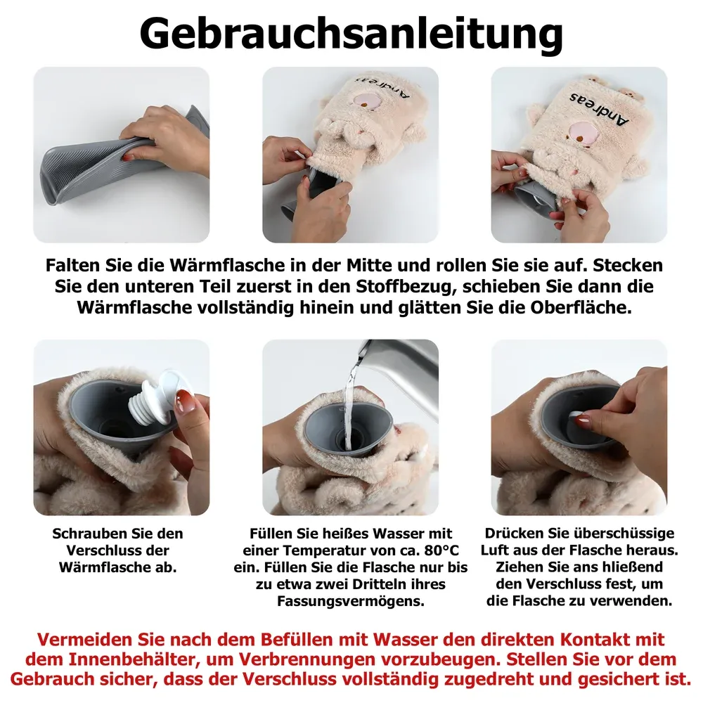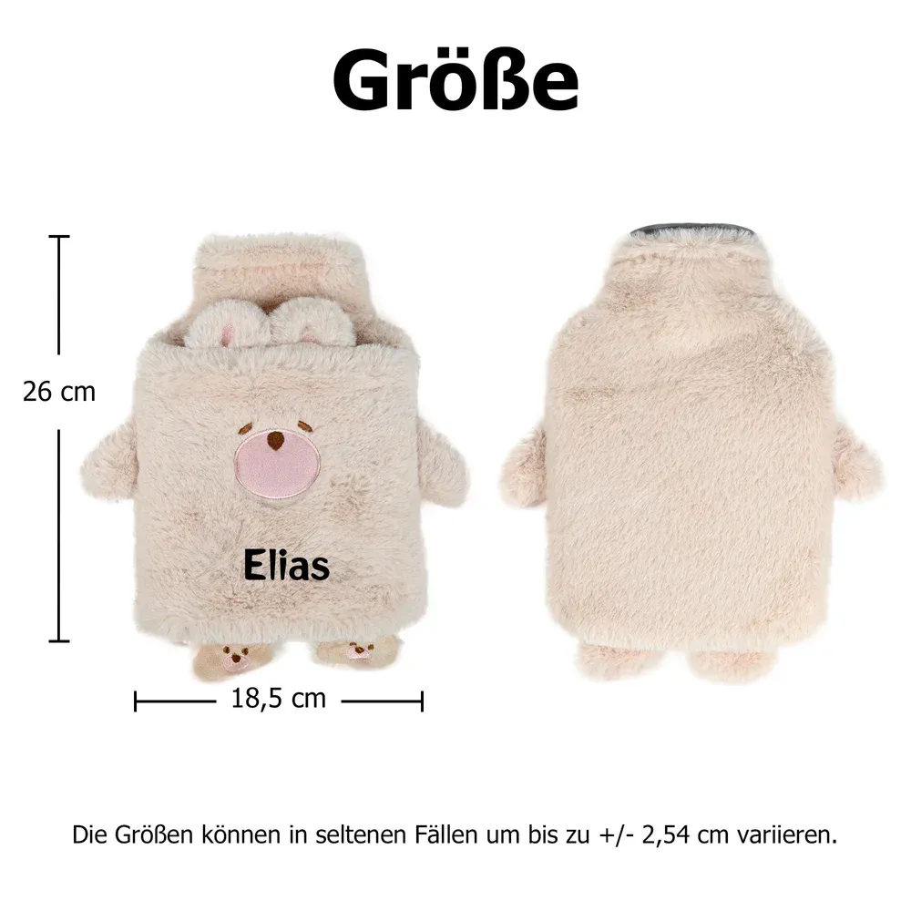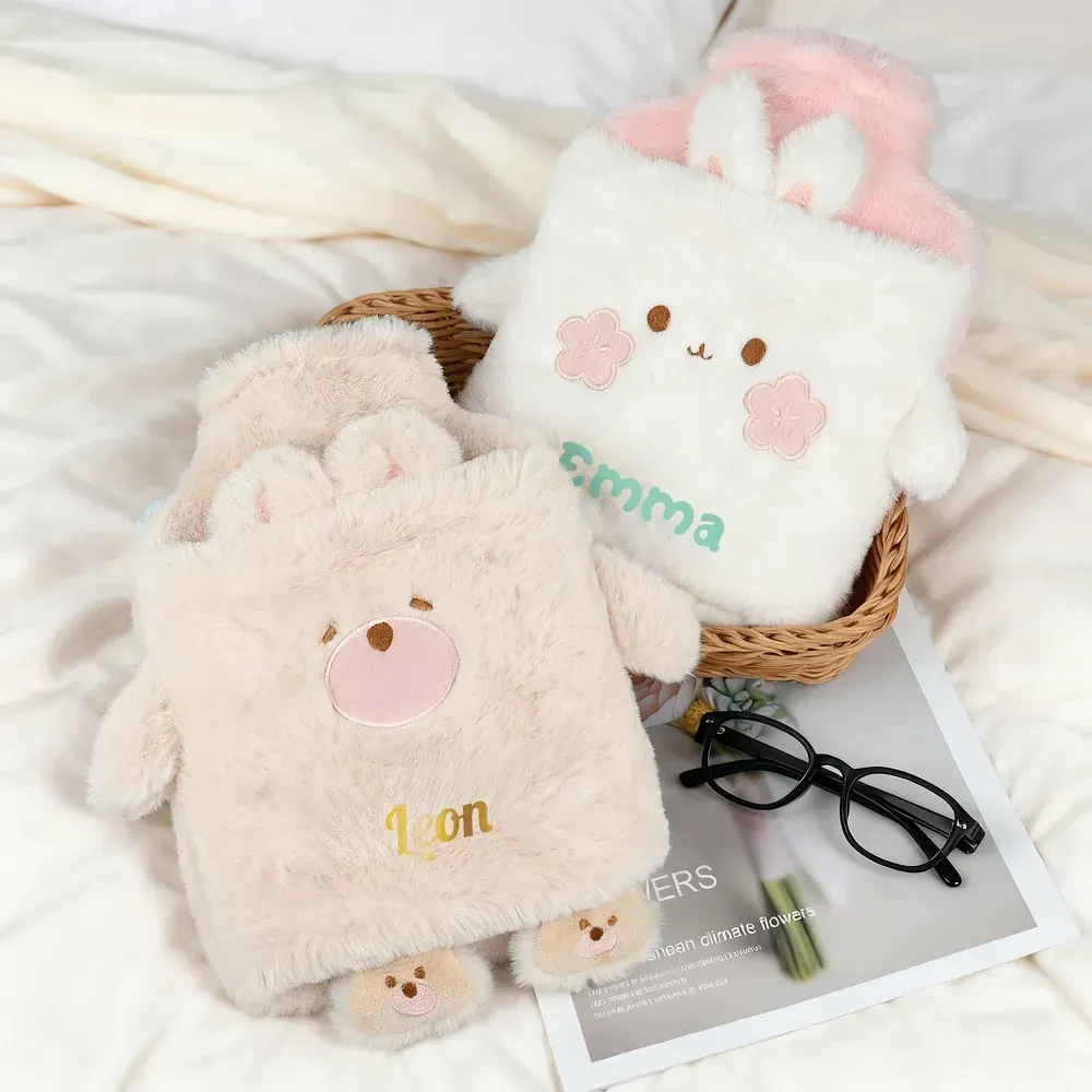 Personalisierte 1-Liter-Wärmflasche aus Plüsch mit niedlichen Tiermotiven und der Möglichkeit, Ihren Namen darauf drucken zu lassen – perfekt für Zuhause, Reisen, Geburtstage, den Winter, Weihnachten oder als Geschenk für Kinder und Freunde.