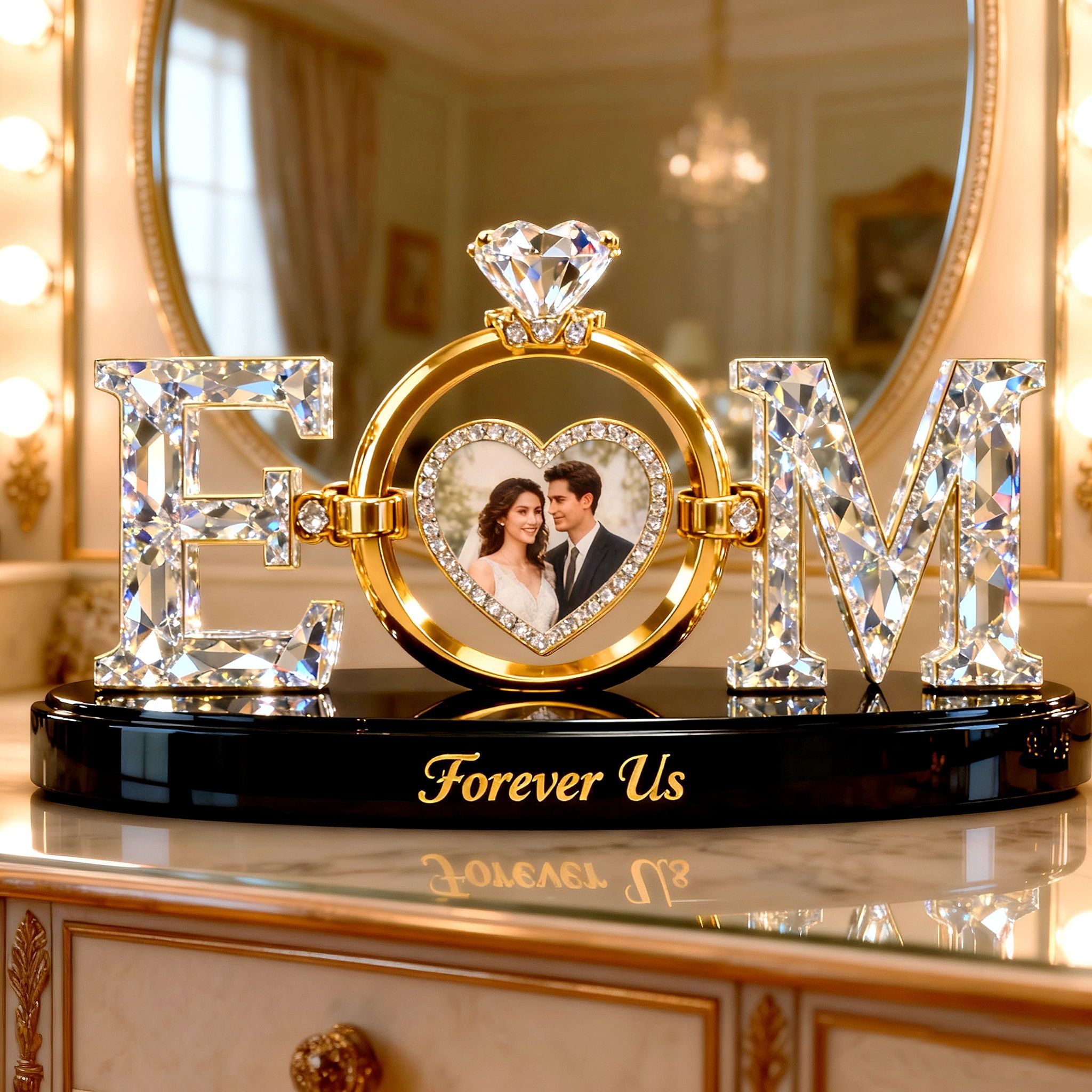 Personalisierbare Buchstabenringplakette für Paare mit Foto