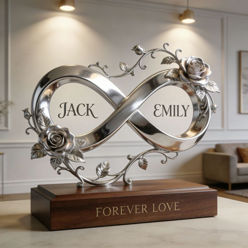 Maßge schneiderte Unendlichkeit symbol Rose-motiv Paar Skulptur & Ornament.